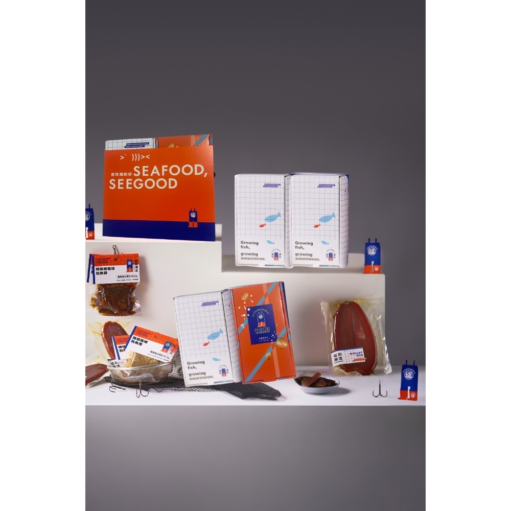 內容物:常溫烏魚排4入、一口吃烏魚子100g±4.5g、禮盒一個。